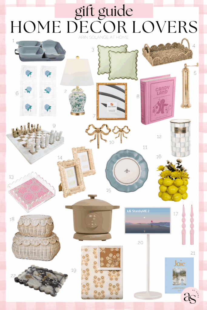 Hopefully this helped you find the best gift for the home decor lover or home owner in your life, and you feel ready to tackle the holidays. Be sure to follow me on Instagram (@arinsolange) and TikTok (@arinsolange) for more fun and inspiration, and pin the photo below for later!